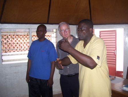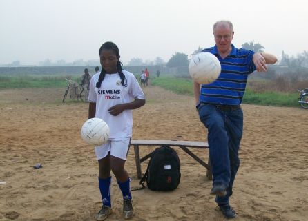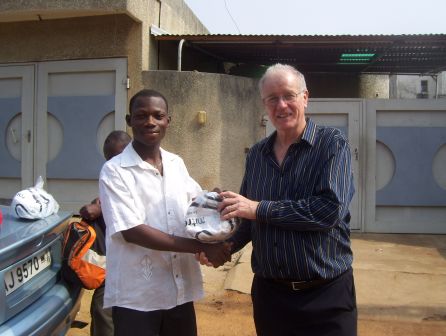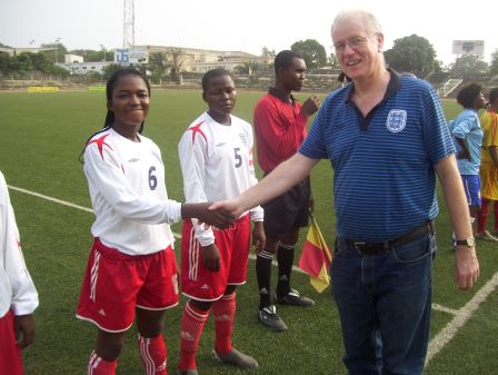 Stuart spent 2 weeks in Africa in January 2011. The visit started with Togo where Verite Sport has a project with the Amis du Monde, women’s football team. Stuart watched the Amis du Monde, wearing their England kit – a gift from the FA – beat Athleta 3-0. He was also able to give the team 17 pairs of boots and 11 balls, sponsored by people in the UK.There were also three separate meetings with people from the Togo FA as well as the President of the Togo Olympic Association.