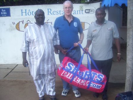 One of the delegates at the training course where Stuart spoke in Benin last year was Charles, a doctor, who serves his community by providing medical services and running a boys’ football team. Two weeks before the visit Charles contacted us and said that he was very short of balls and kit. Could Verité Sport help? The FA kindly supplied shirts. The previous year Drayton Boys have given us some kit with a lot more socks and shorts than shirts. And the colours matched!!