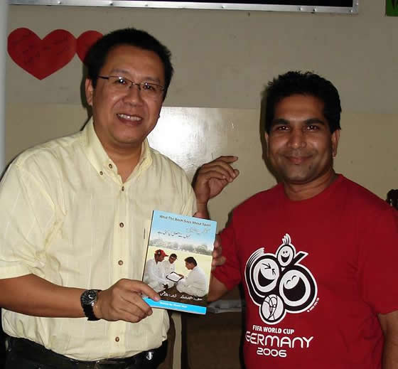 Andy Lim and Victor Lal at the launch of What the book says about sport in Urdu