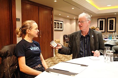 Chaunte Lowe telling me about winning the High Jump, in Istanbul